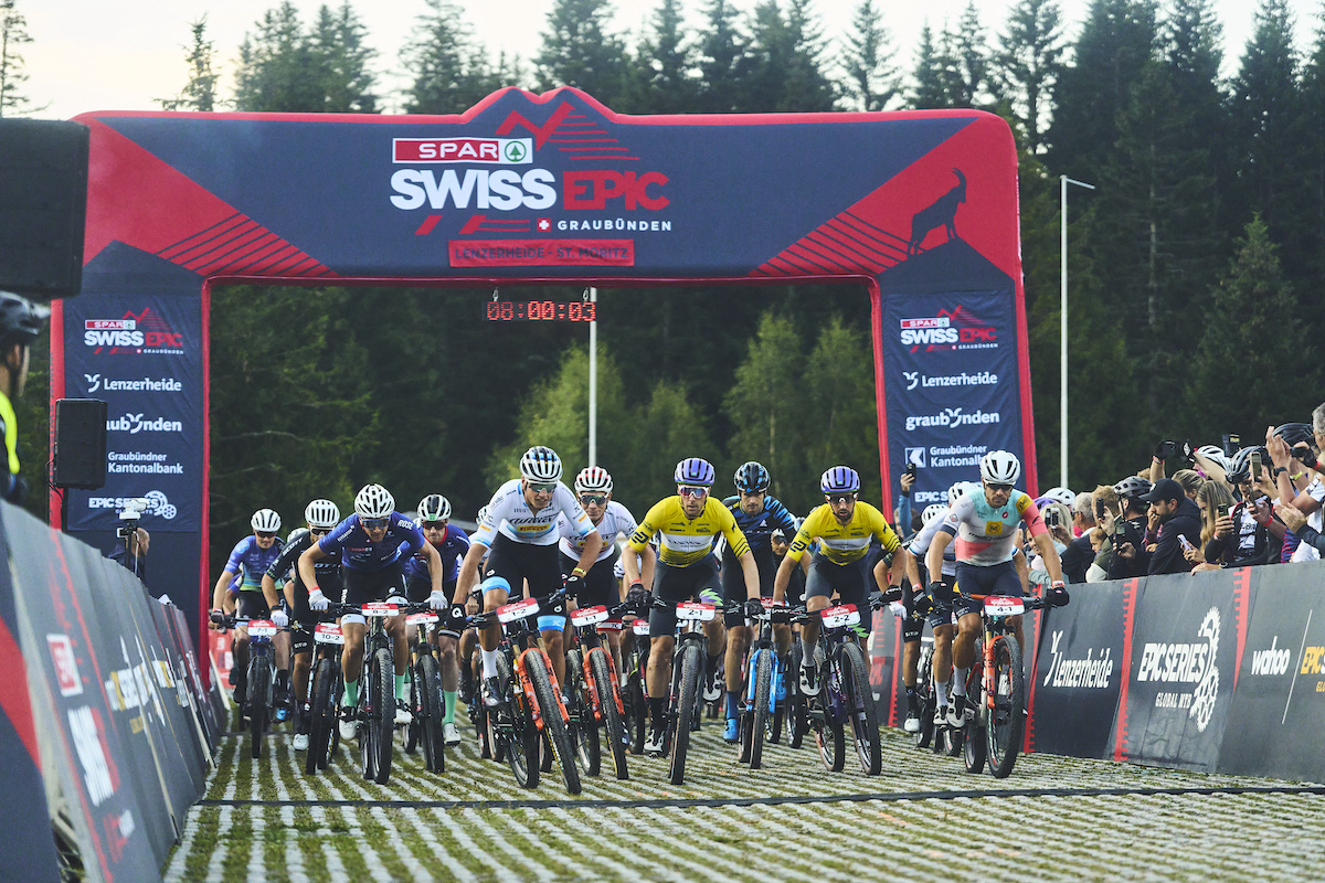 Start line during Stage 2 of the 2023 Swiss Epic from Lenzeheide to St. Moritz, Graubünden, Switzerland on 16 August 2023. Photo by Michael Chiaretta. PLEASE ENSURE THE APPROPRIATE CREDIT IS GIVEN TO THE PHOTOGRAPHER.